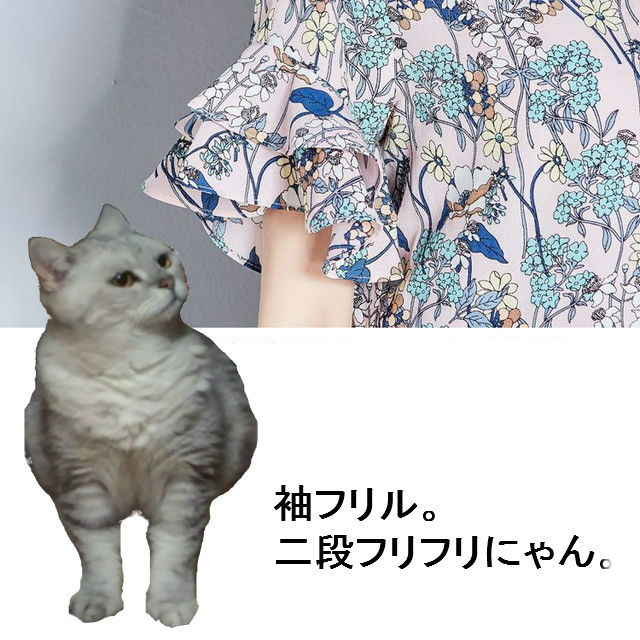 袖フリル 裾フリル 花柄チュニック