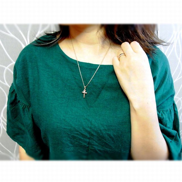 ハワイアンジュエリー クロスネックレス スクロールモチーフデザイン イエローゴールド/ピンクゴールド
