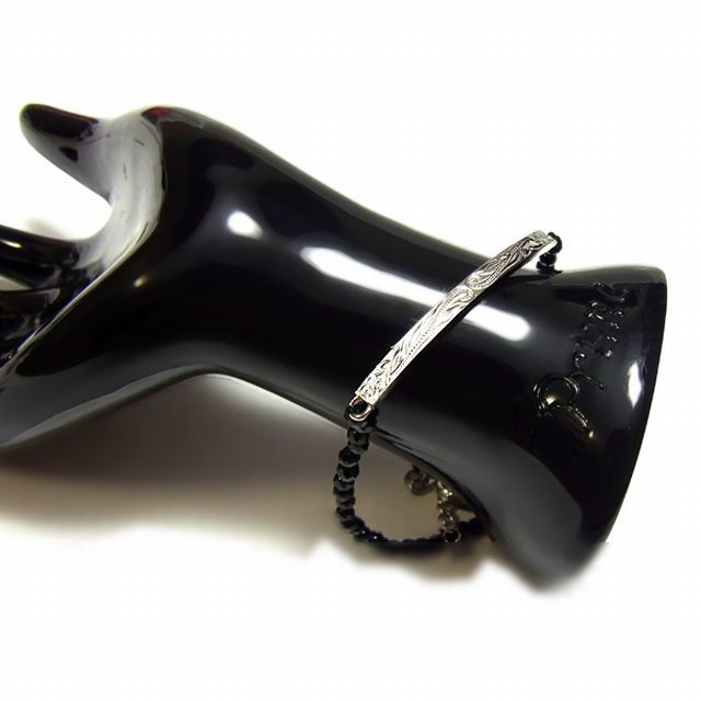 ハワイアンジュエリー ブレスレット オニキス イエローゴールド スチールシルバー
